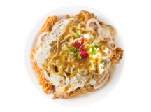 Fresh Sliced Onions and Refreshing White Sauce on Top of Crispy Fried Chicken